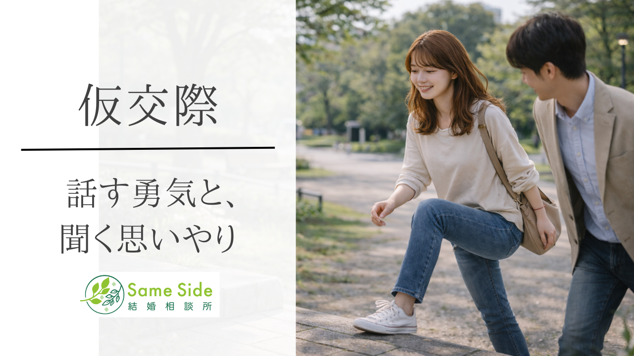仮交際はどこまで話す?踏み込んだ話や真剣交際前に確認することを仲人が整理。話しづらい内容の伝え方や、結婚観は「方向性」だけ共有するコツまで解説。